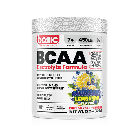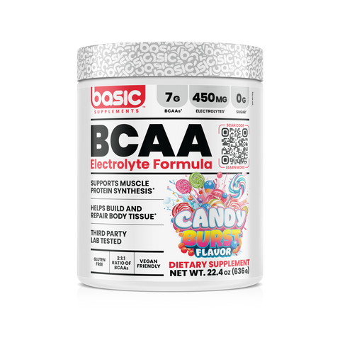 Mejora tu rendimiento y acelera tu recuperación con BCAA de Basic Supplements, formulado con una proporción óptima 2:1:1 de leucina, isoleucina y valina para estimular la síntesis proteica, reducir la fatiga muscular y proteger tu masa magra durante entrenamientos intensos.
