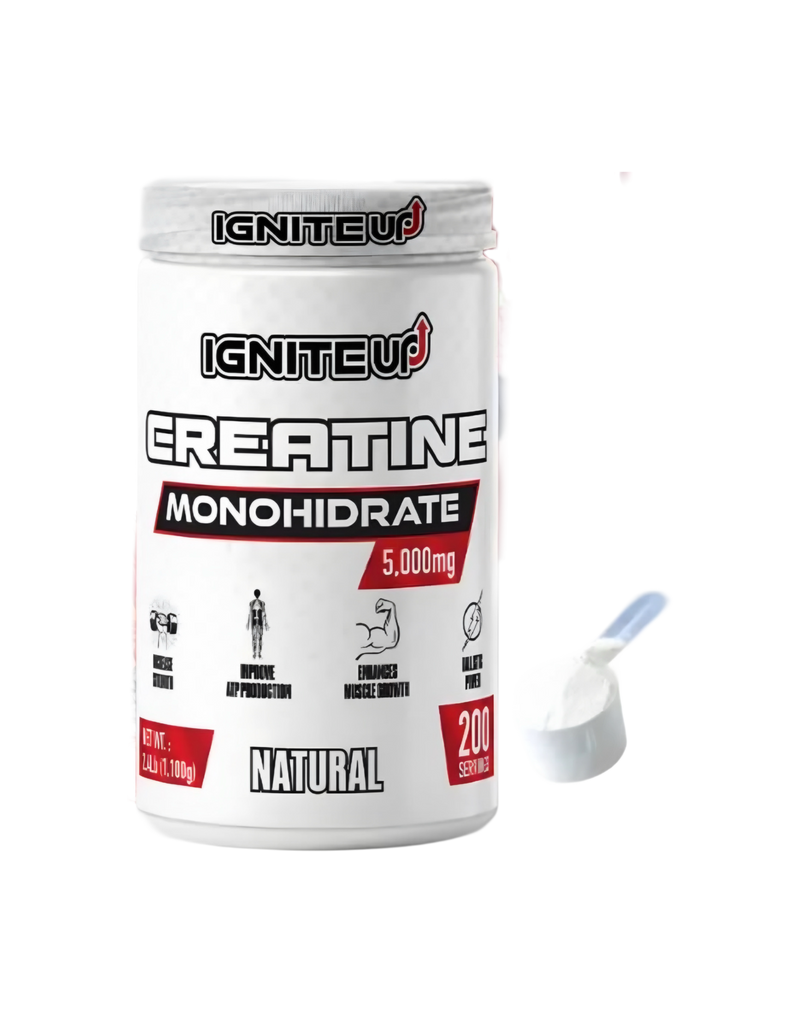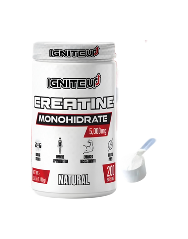 Ignite Up Creatine Monohidrato, alta pureza formulada para aumentar la producción de energía (ATP) mejorar la fuerza, potencia y rendimiento en entrenamientos de alta intensidad.