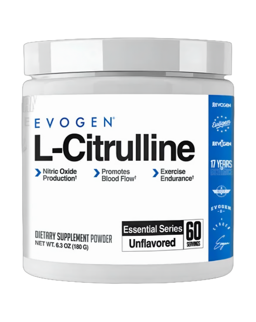 Evogen L-Citrulline es un aminoácido puro de grado clínico diseñado para aumentar el flujo sanguíneo, mejorar la vasodilatación y potenciar el pump muscular durante tus entrenamientos.